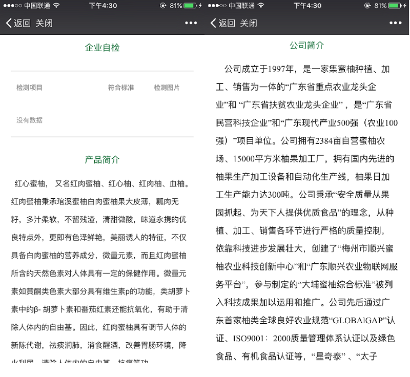 天潤智力農(nóng)產(chǎn)品溯源系統(tǒng),給廣東順興種養(yǎng)股份有限公司的每一批制作了唯一的身份(二維碼),完整記錄這蜜柚的品種、產(chǎn)地、種植、肥料使用、生長環(huán)境等全部信息,消費者只要掃描產(chǎn)品二維碼,就能快速地查看農(nóng)產(chǎn)品的詳細信息。廣東順興種養(yǎng)股份有限公司利用農(nóng)產(chǎn)品溯源平臺,在消費者心中,很好地展示了安全、優(yōu)質的良好品牌形象。