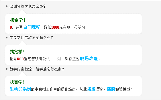 新提升為主管,還在于沒有經(jīng)驗打造團隊而苦惱? 業(yè)務(wù)擴展,人員增長帶來的物品管理總是讓你處于崩潰邊緣? 為什么TA總是話題中心,而我總是插不上話? 為什么別人的業(yè)績像起飛的火箭,而我的業(yè)績像中國股市? 企業(yè)大學(xué)為您解惑,數(shù)百位世界500強成功人士用切身經(jīng)歷面對面為您點撥。