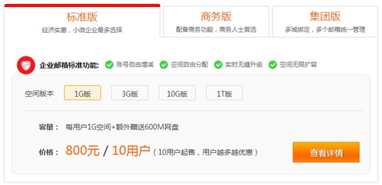 點擊“查看詳情”進入到云郵箱標(biāo)準(zhǔn)版購買頁面。如下圖: