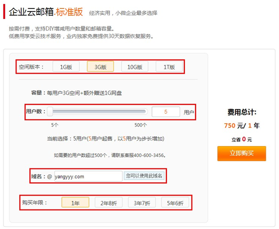 云郵箱在線購買流程: