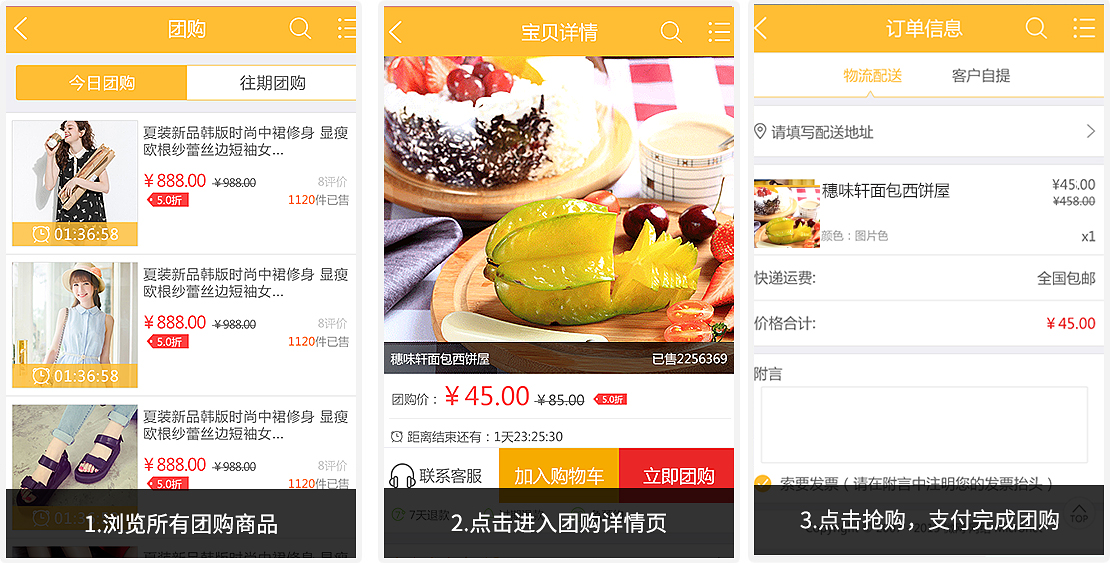 自動(dòng)顯示團(tuán)購(gòu)產(chǎn)品的原價(jià)、折扣和節(jié)省的費(fèi)用,以令團(tuán)購(gòu)更具吸引力,并實(shí)時(shí)倒計(jì)時(shí)。