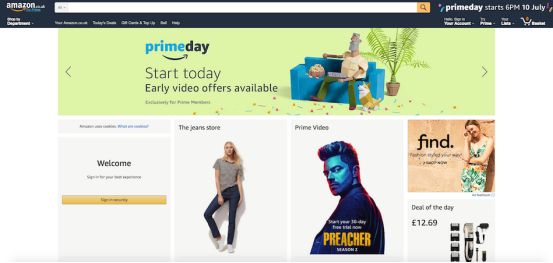大型網(wǎng)站,比如Amazon、YouTube和Facebook,都在所謂的主圖(hero image)上花費(fèi)了很大精力。主圖指的是占據(jù)網(wǎng)站中心位置的一張大圖,是訪問(wèn)者第一眼就能看到的內(nèi)容。它可能會(huì)包含行為召喚(call to action)指引訪問(wèn)者進(jìn)行特定行為,可能是信息性?xún)?nèi)容,也可能是一張引人注目的圖片以期引起訪問(wèn)者的某種情緒反應(yīng)。