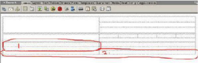 插入表格的時(shí)個(gè)要注意對(duì)比原h(huán)tm文件中的內(nèi)容,思考為什么這樣做;接下來在第二行中插入一個(gè)二行二列的表格,按上面的方法合并左邊的格子,并在右邊格子的第一行插入一個(gè)一行五列的表格如圖示: