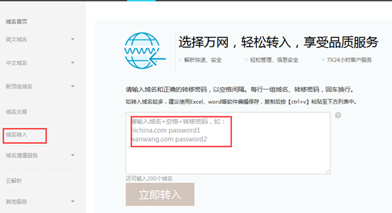 1、真實存在的域名才可進行域名轉(zhuǎn)入;
