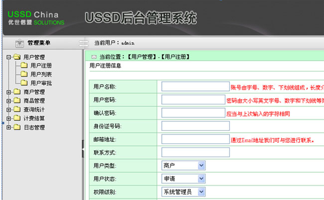 USSD后臺(tái)管理系統(tǒng)