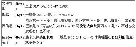 FLV header比較簡單,主要包括這個文件的全局信息: